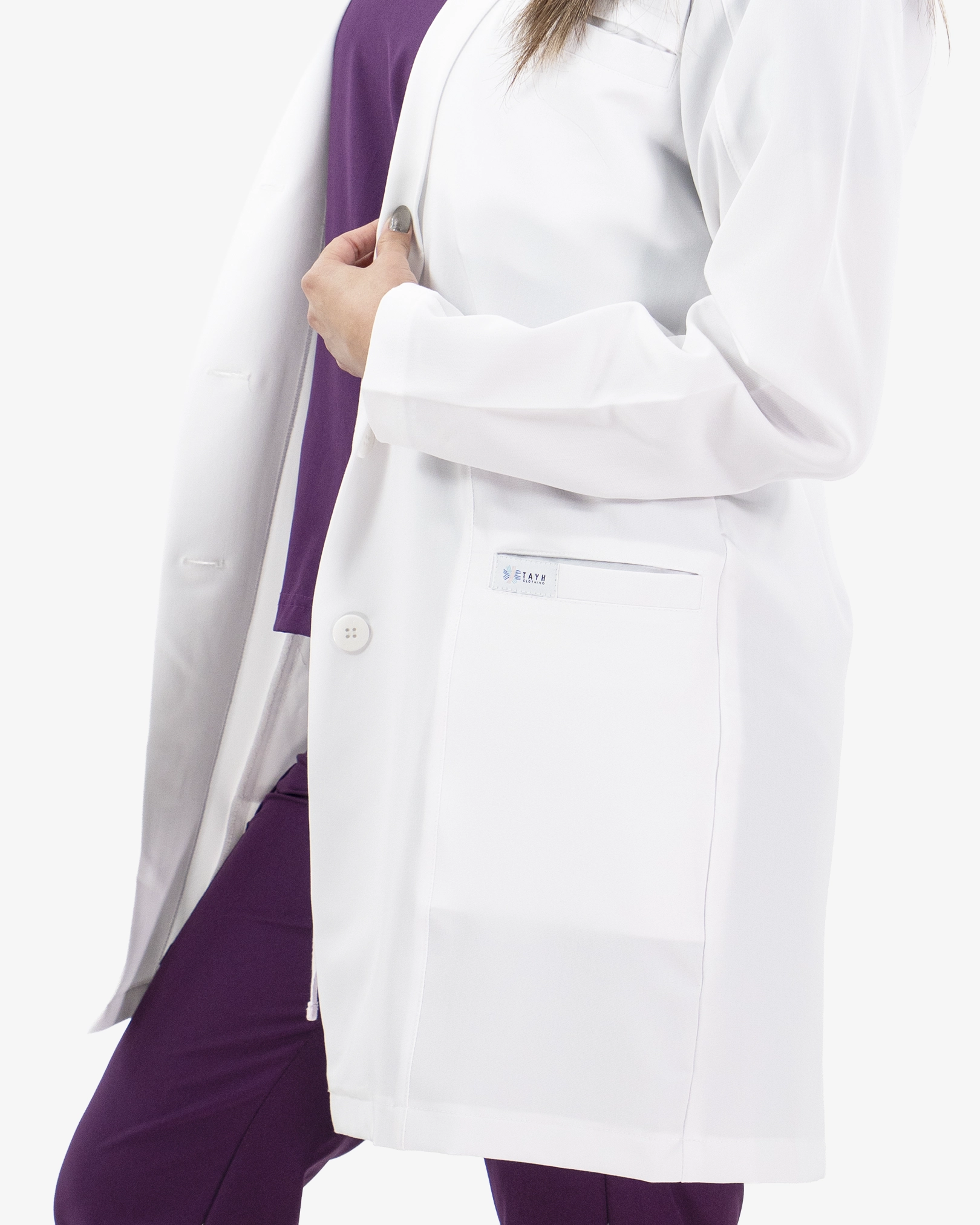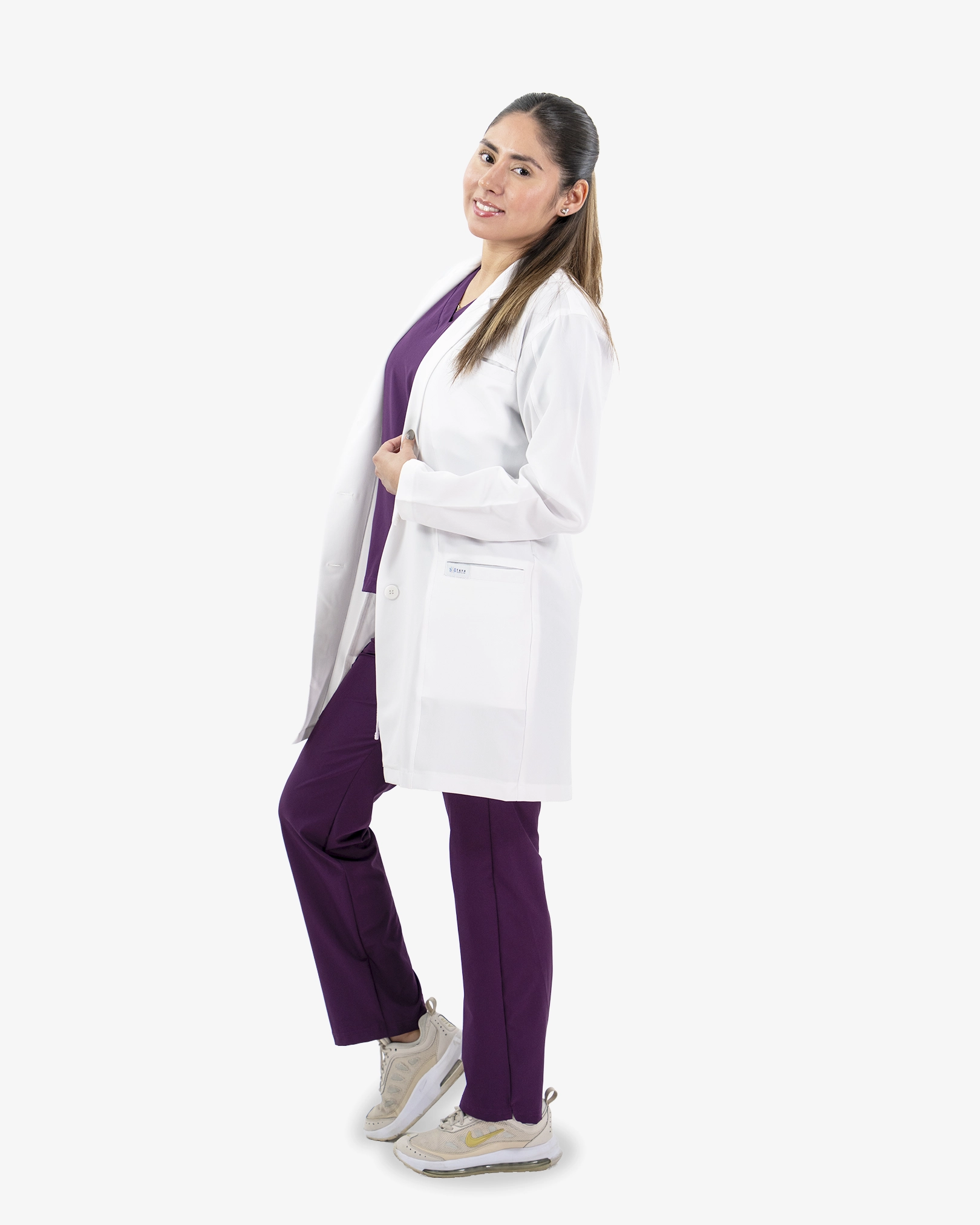 Su diseño femenino estiliza la silueta sin sacrificar movilidad, ofreciendo resistencia, frescura y confort durante toda la jornada clínica.