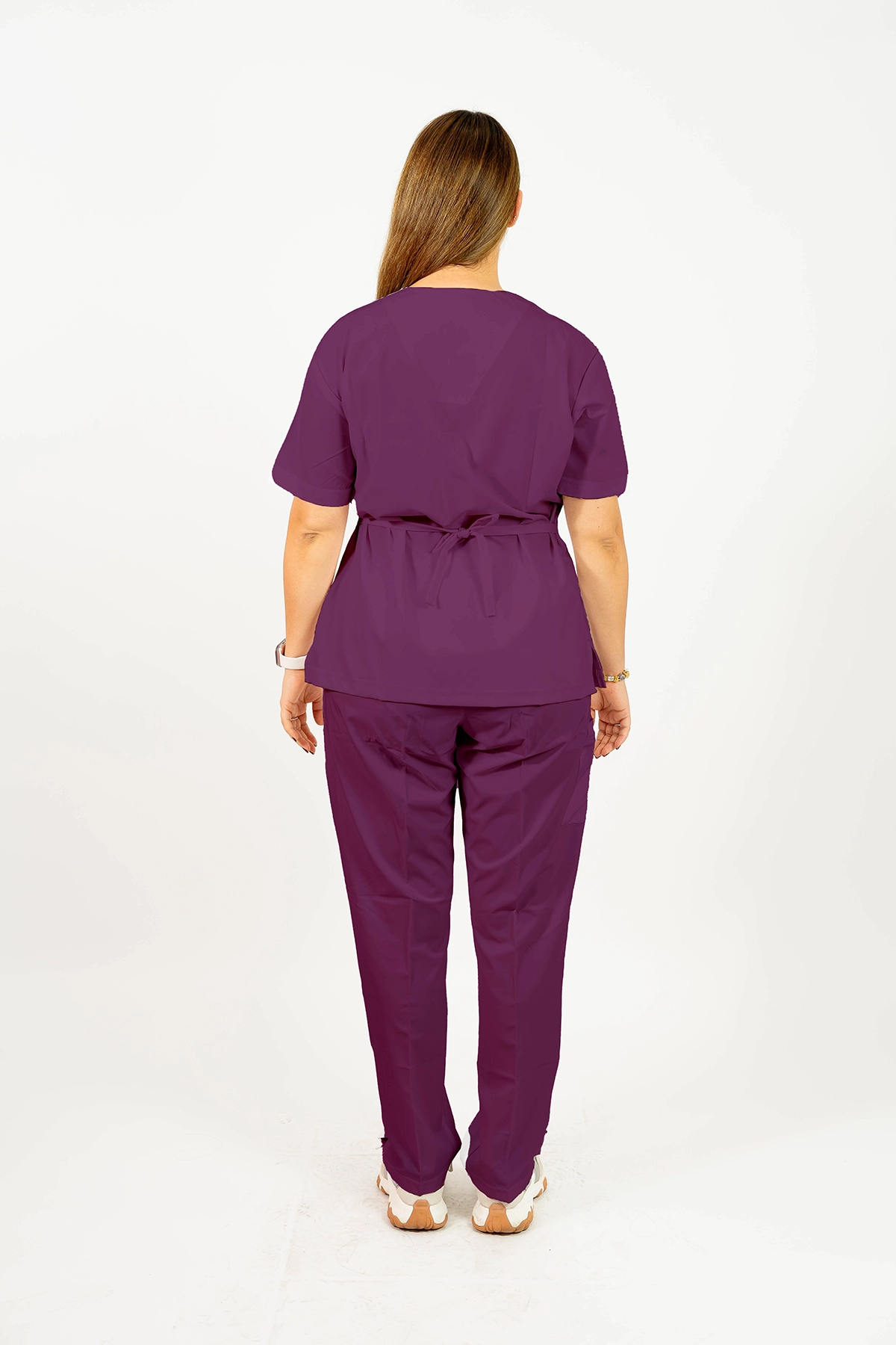 El equilibrio entre elegancia y confort. El conjunto Kurashiku en uva resalta por su corte impecable y materiales de alta calidad. Su tela OM (Poliéster-Spandex) ofrece flexibilidad y transpirabilidad, con la ventaja de la superrepelencia a fluidos que lo mantiene impecable todo el día.