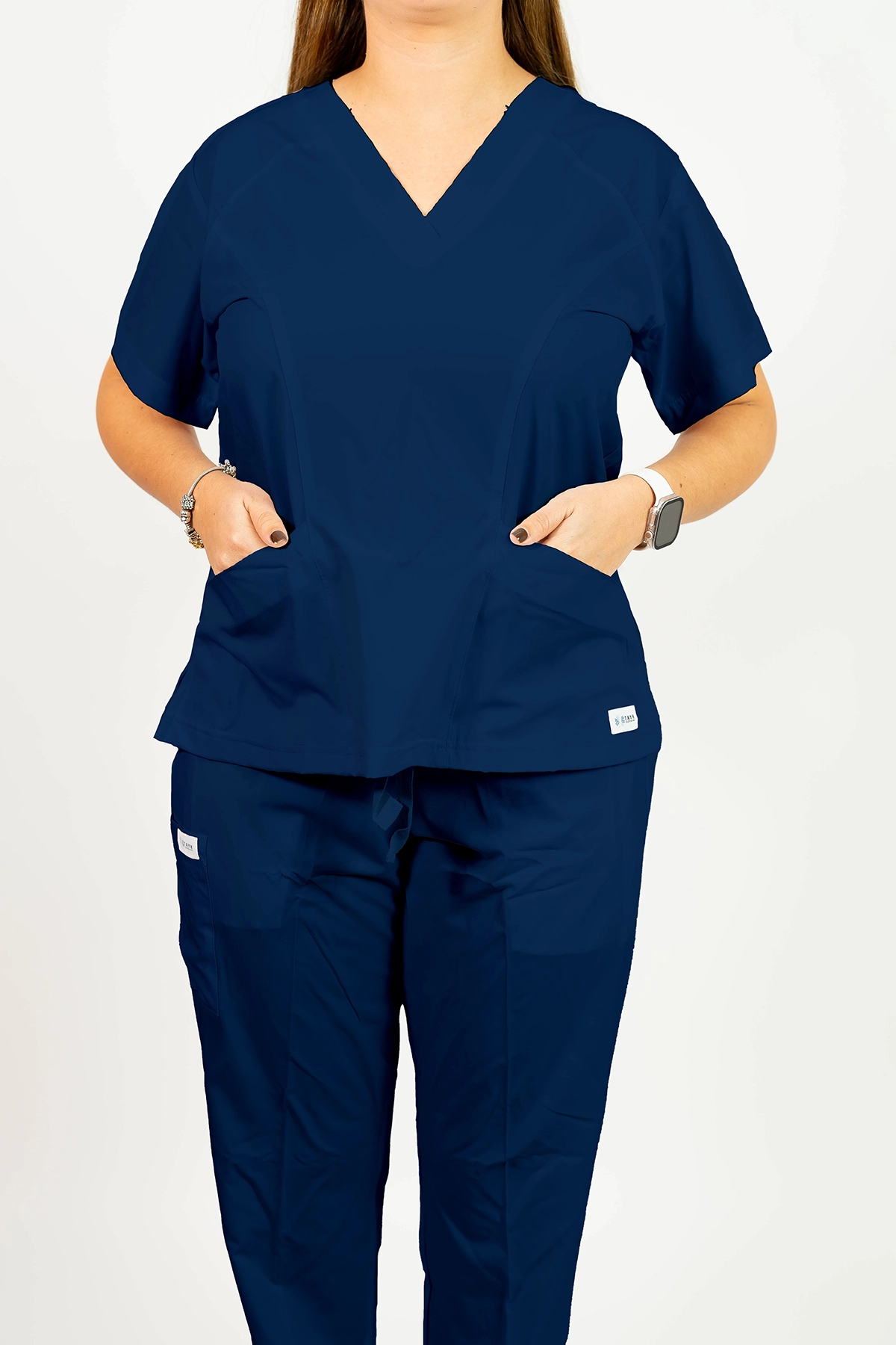 Versatilidad y distinción en un solo uniforme. El conjunto Osaka en azul marino es ideal para quienes buscan funcionalidad sin renunciar a la elegancia. Elaborado en tela OM (Poliéster-Spandex), brinda suavidad y confort con la protección adicional de superrepelencia a fluidos.