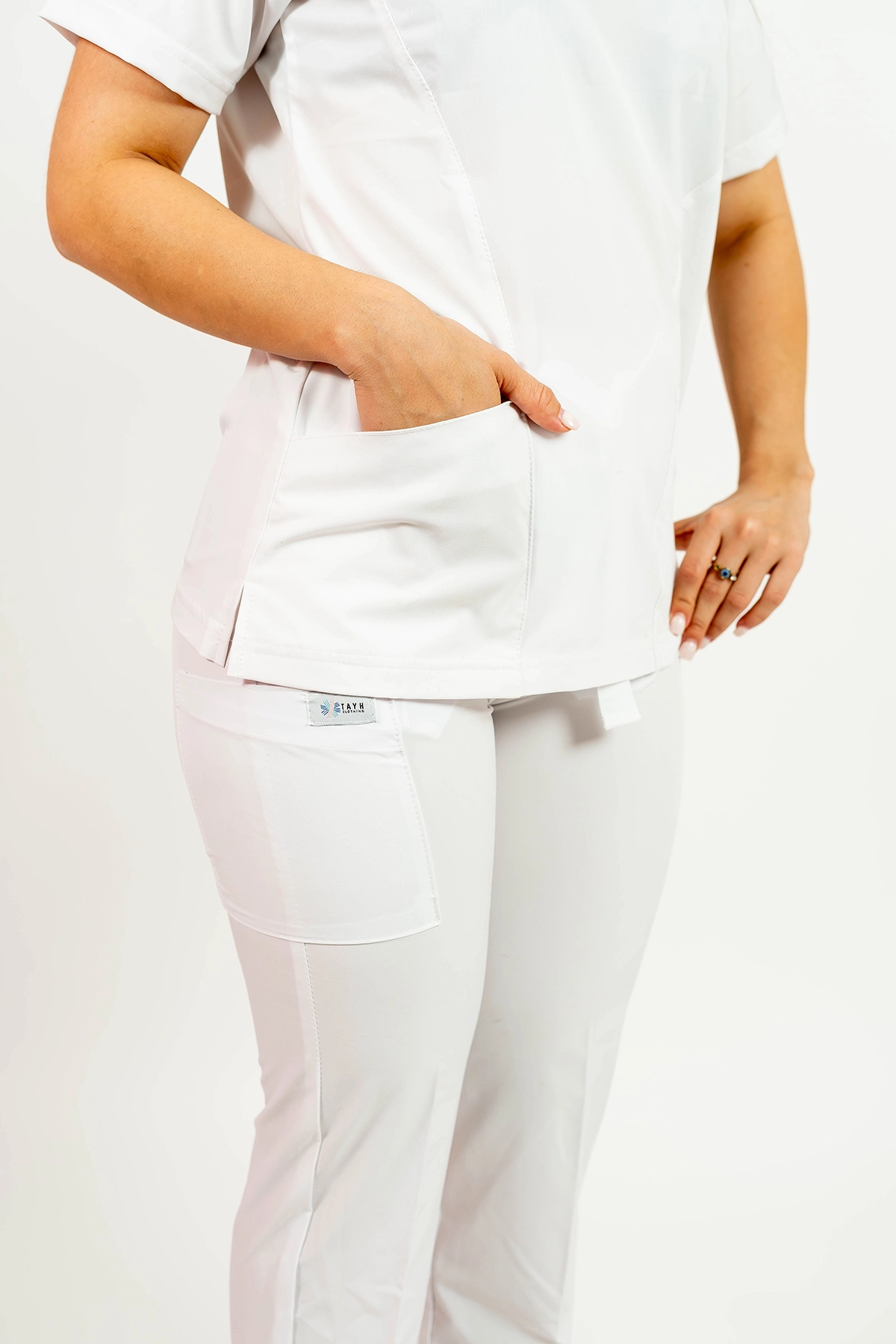 Movilidad y resistencia en cada costura. El pantalón Osaka en blanco está diseñado para brindar el mejor desempeño en el día a día. Su tela OM (Poliéster-Spandex) asegura frescura, elasticidad y superrepelencia a fluidos.